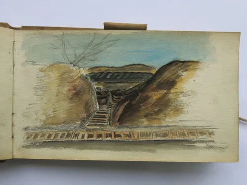 - the rolling hills beyond the barbed wire in a French officer’s sketchbook;