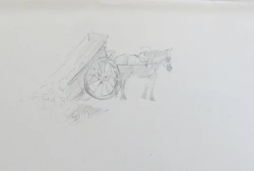There are photos showing this church in ruins in 1916. This sketch is undated, unlike may of the others. Perhaps this was drawn during his time in Flanders, intended as the first 'proper' sketch at the front of the book, after the title page L'Yser les Flandres 1914-1915 that he was still practising.