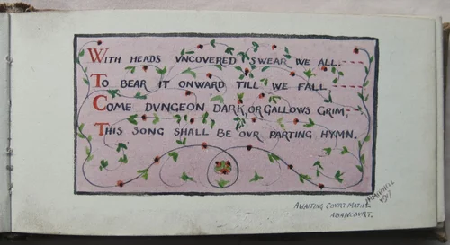George Stanley circulated the sketchbook that held Freer's painting 'Solitude' among those awaiting court-martial. On the front page he exhorted them all to write something - to leave a permanent, passionate record of what they believed in, and what they were prepared to die for.