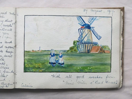 They worked enthusiastically in a bakery at Calais for over a year, providing food for troops entering France or leaving wounded. Two of the sketchbooks cover that period, with C.Harold Fitch writing music and George Stanley leading the team and maintaining morale. Morale was important - it was a time when conscientious objectors were often ridiculed as cowards.